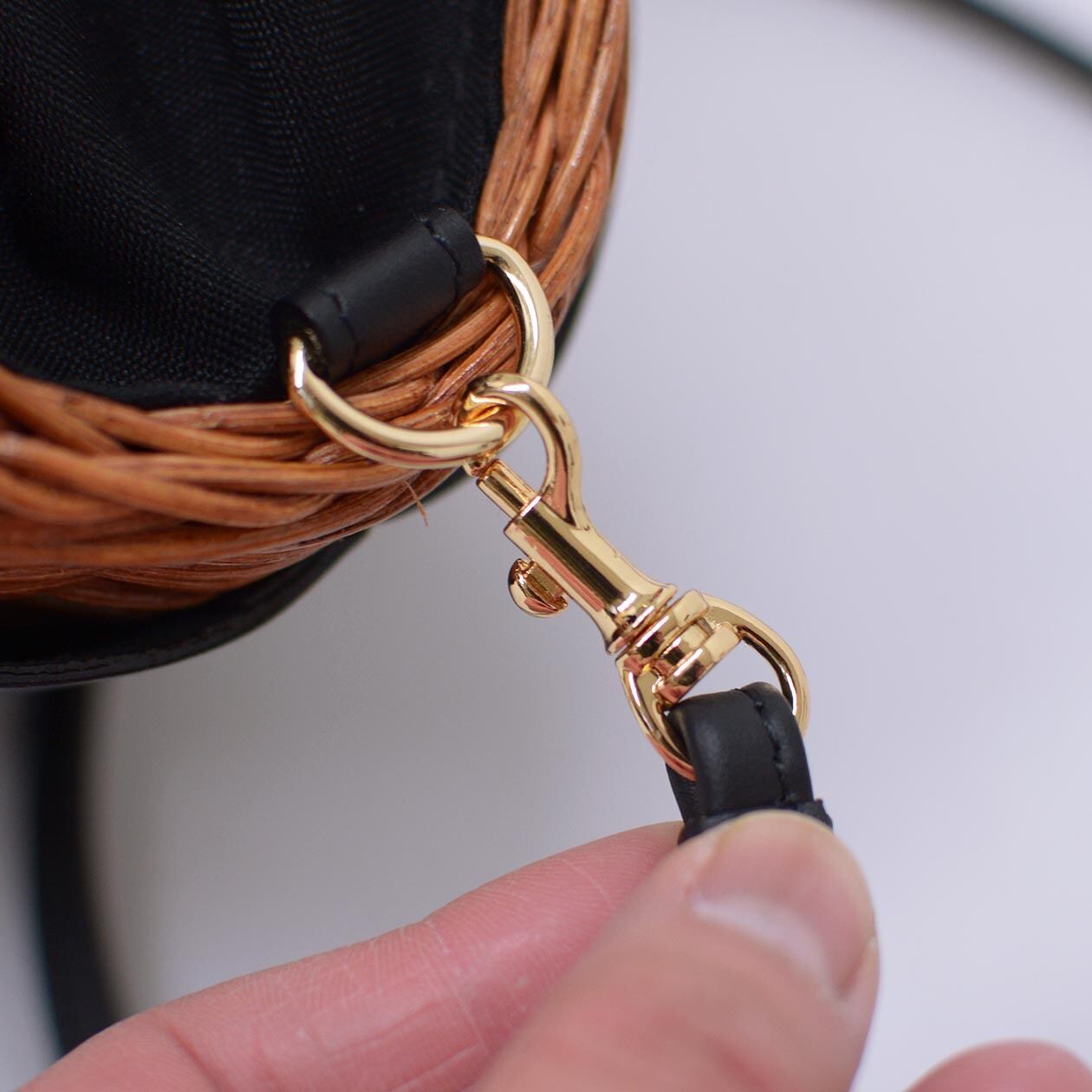 天然の藤で作られたナチュラルな素材感と、クールなブラックレザーのコントラスト。 そして、ゴールドのパーツなど、極上の雰囲気を感じさせるモデルに仕上がっています。