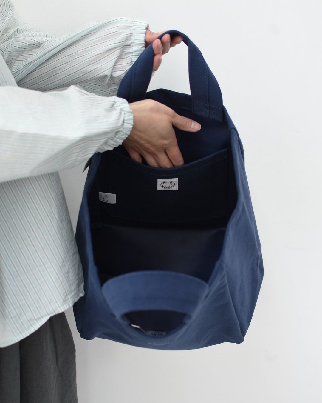 太めのハンドルが特徴的なトートバッグ。