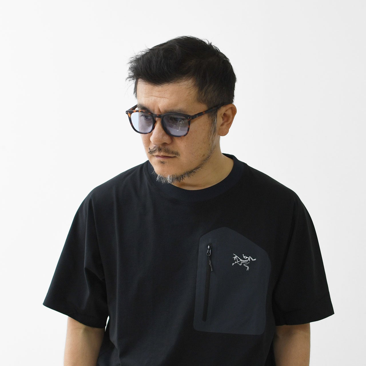 #EはIZIPIZIの中でも大きめのフレームなので、顔全体の印象を細く見せ、小顔に見せることができます。