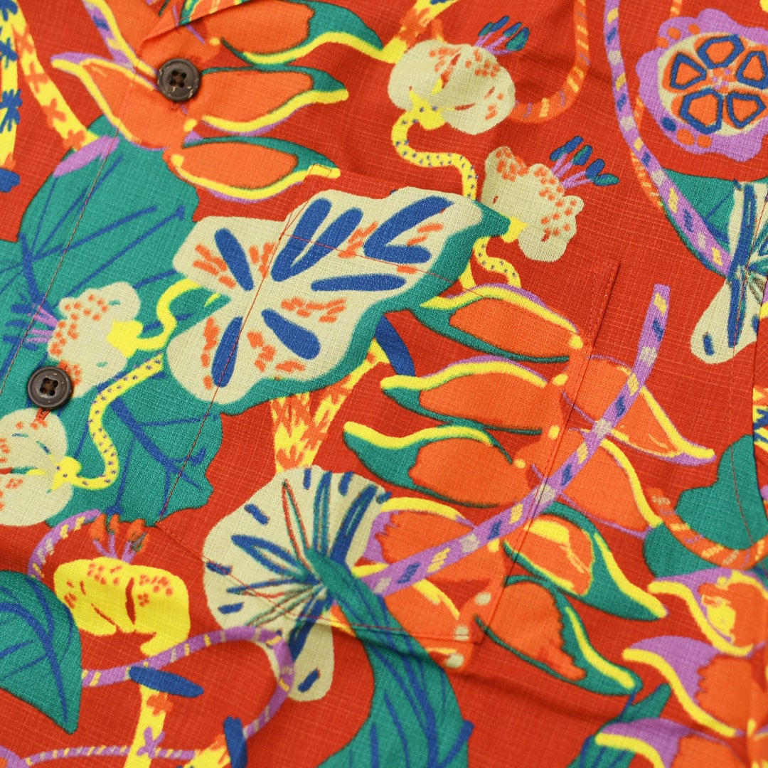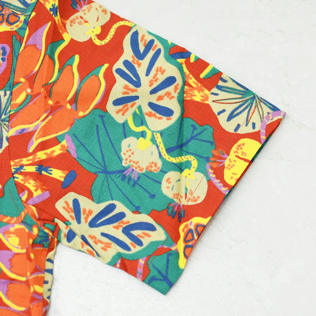 軽量で風通しのよいオーガニックコットン100%素材を使用し、長持ちするよう作られたタイダル・スレッズ・キャンプ・シャツは、ボタン留めの前立てを備えたデザインで、私たちが力を合わせて守るべき熱帯の土地と水域を着想源としたアロハ・プリントを採用。