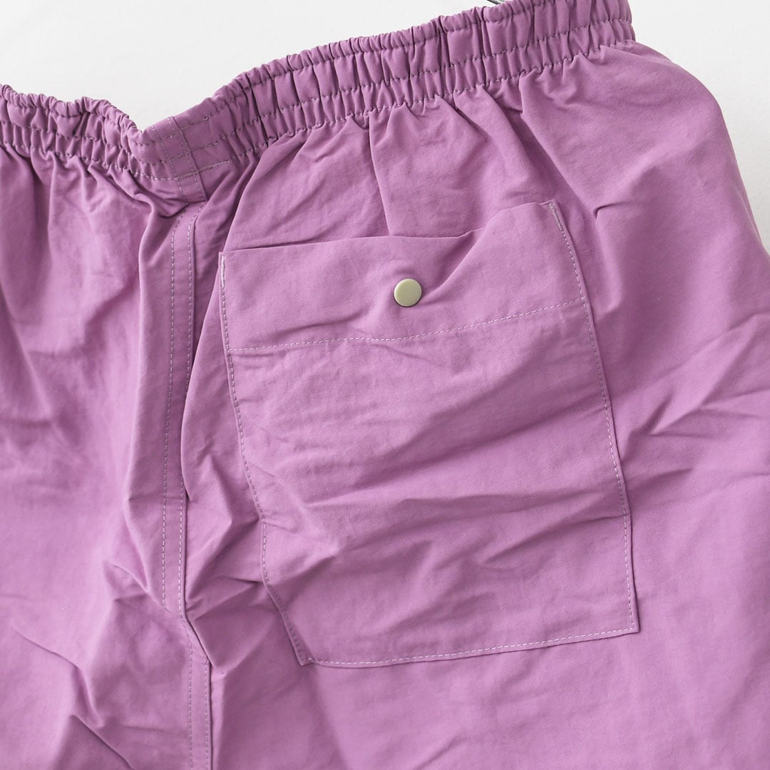 速乾性を備えた軽量な、漁網をリサイクルして海洋プラスチック汚染の削減に貢献する、ネットプラス・ポストコンシューマーリサイクル・ナイロン100%のファイユを使用し、軽度の水分を弾くDWR(耐久性撥水)加工はPFASを意図的に添加せずに製造。