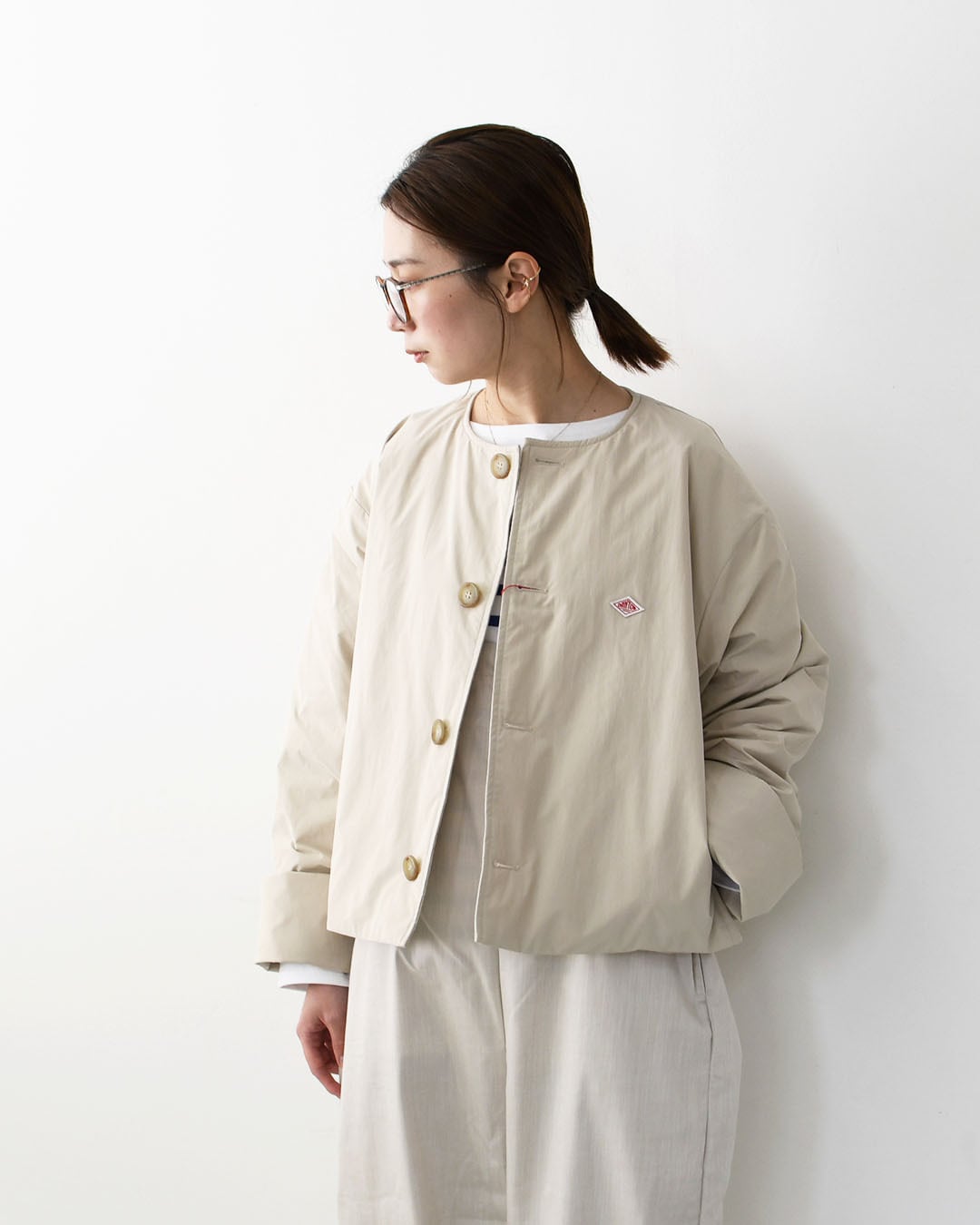 DANTON [ダントン] W INSULATION COLLARLESS WIDE JACKET [DT-A0672PNT] インサレーションカラーレスワイドジャケット・インサレーションジャケット・カラーレスジャケット・ショート丈ジャケット・LADY'S [2026SS]