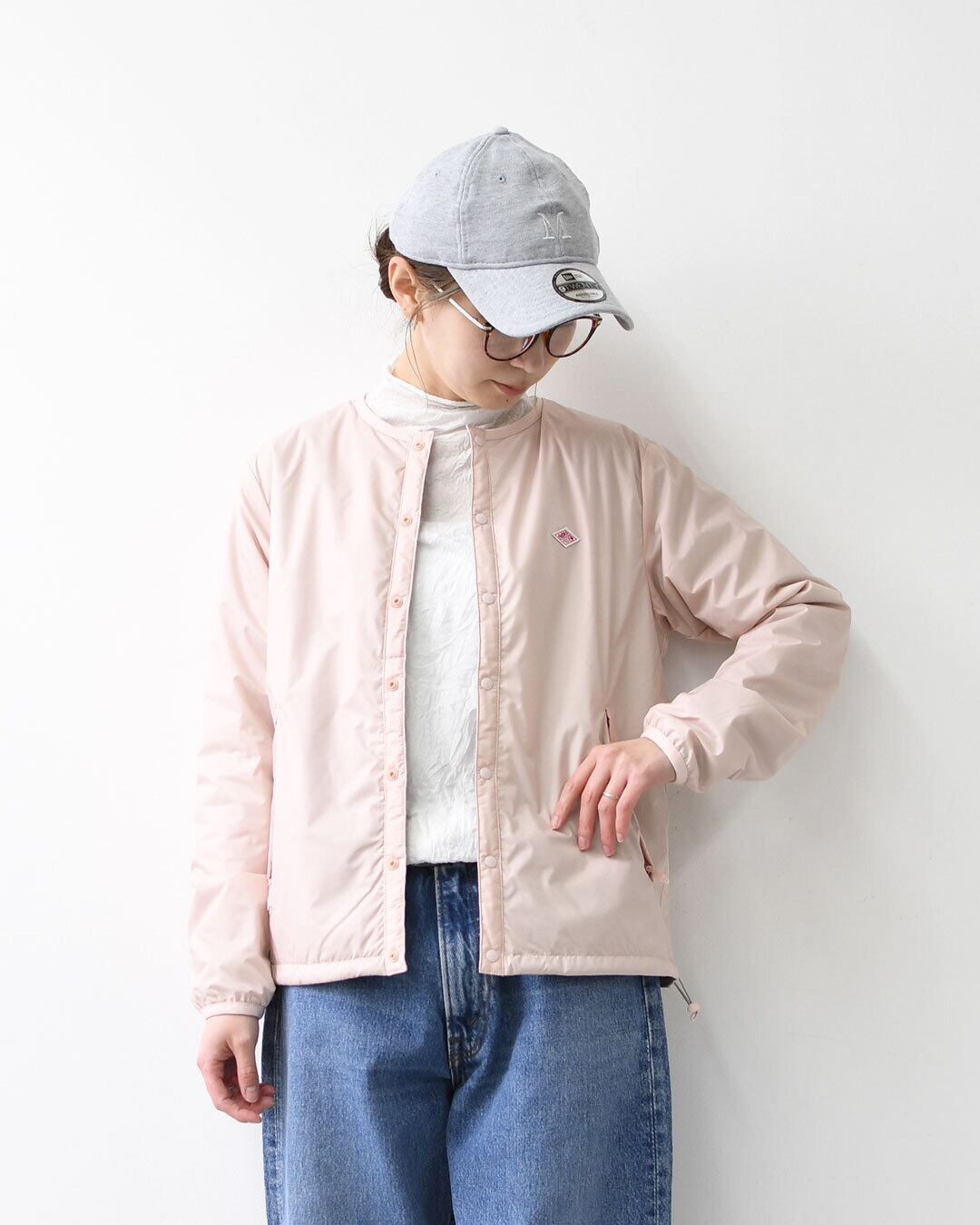 ・ミドルレイヤーとしても活用できる、ジャストサイズの中綿入りノーカラージャケット