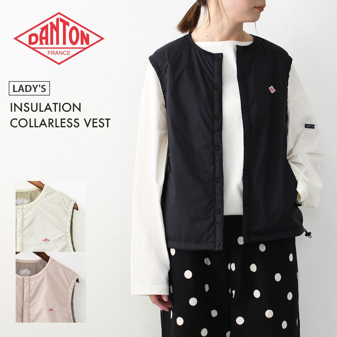 DANTON [ダントン] W IINSULATION COLLARLESS VEST [DT-A0634SNT] インサレーションカラーレスベスト・インサレーションベスト・ノーカラーベスト・ナイロンベスト・ミドルレイヤー・軽量・LADY'S [2026SS]
